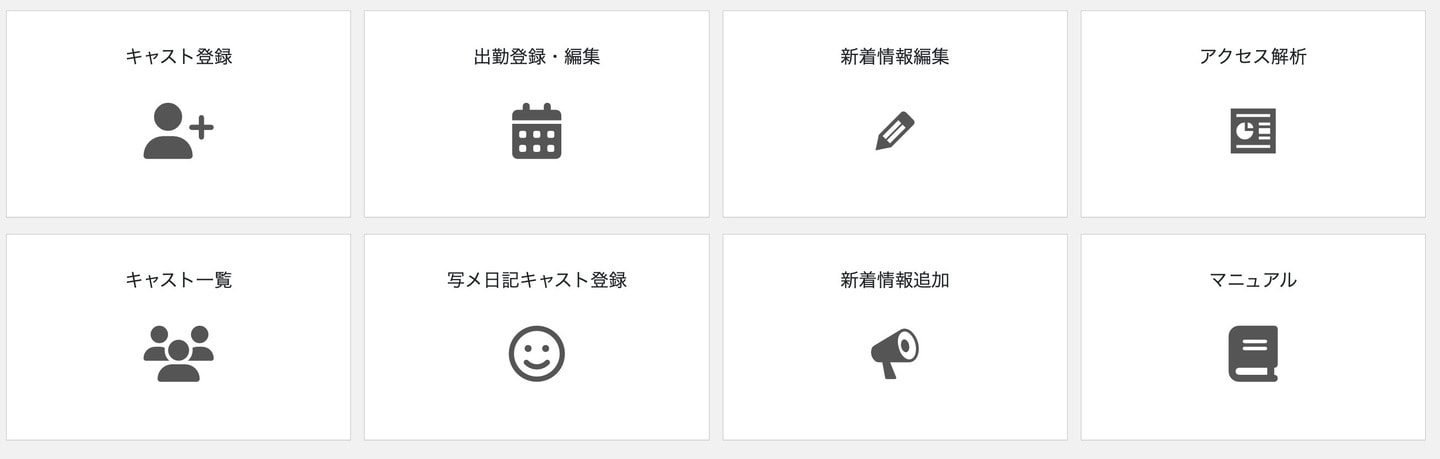 基本的な日々の更新、編集作業はこちらのダッシュボード上のメニューから作業を行ってください。